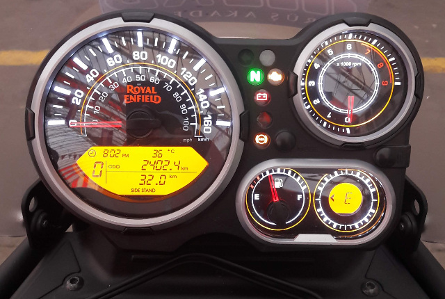 En başta söyledim, her parçası işlevsel, en önemli detay Royal Enfield yazısının olduğu şasiye bağlı demir aslında depo koruma . Oraya sis lambası bağlayabilir, çanta asabilirsin. 800 mm sele yüksekliği ile ayaklar yere basıyor. Mesela buraya Ténéré ile çıkmaya cesaret edemezdim.